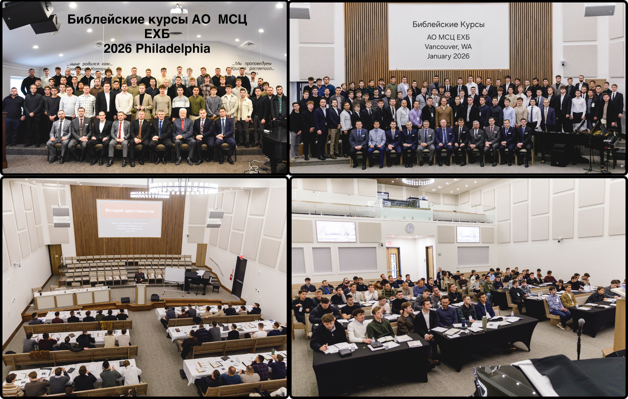 Традиционно в январе, уже пятый год подряд, прошли библейские курсы на обоих побережьях Америки. Десятки студентов четырёх курсов имели возможность обучаться в течение девяти дней в уютных и гостеприимных условиях молитвенных домов церкви Philadelphia (East Coast) и Vancouver (West Coast).